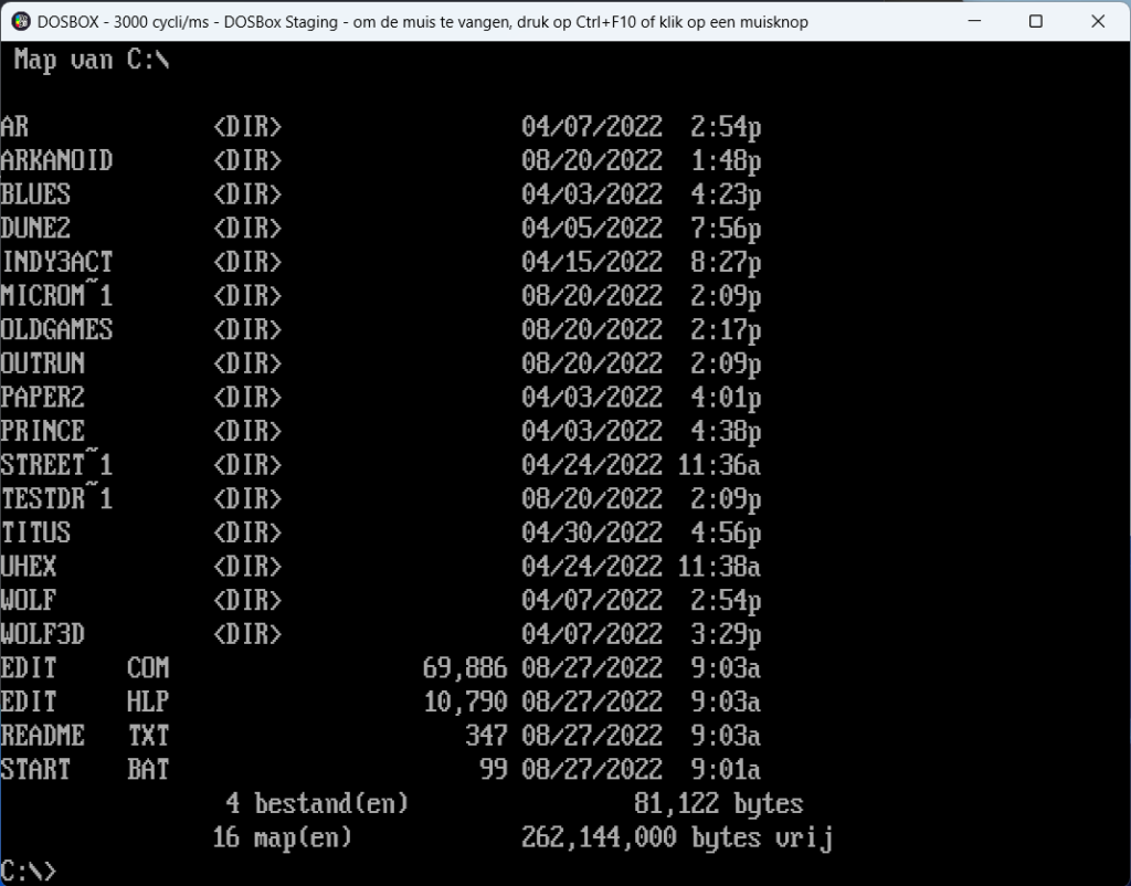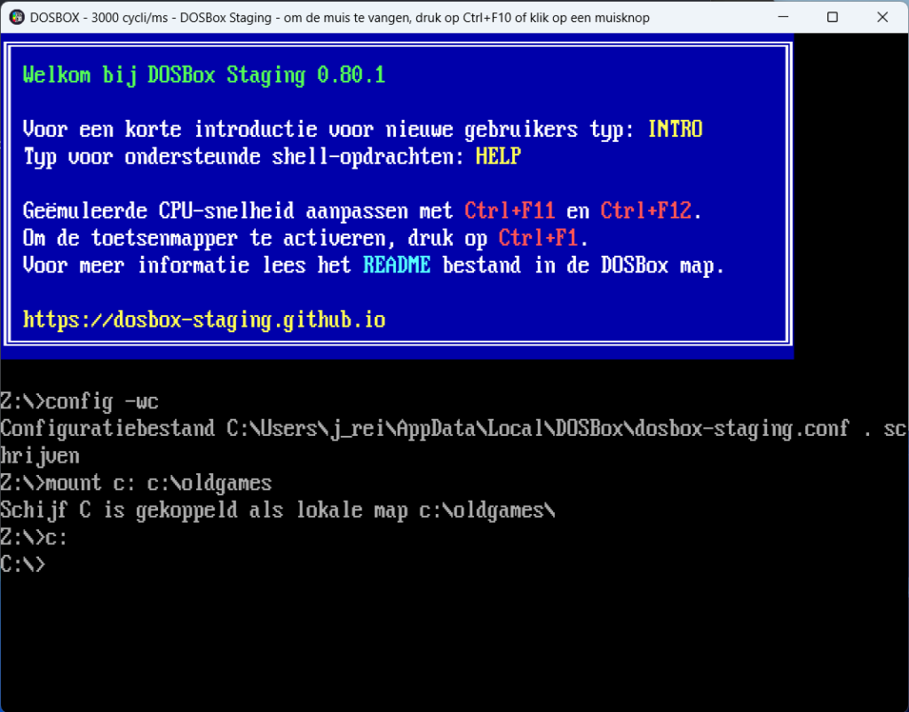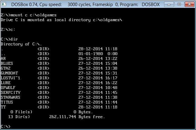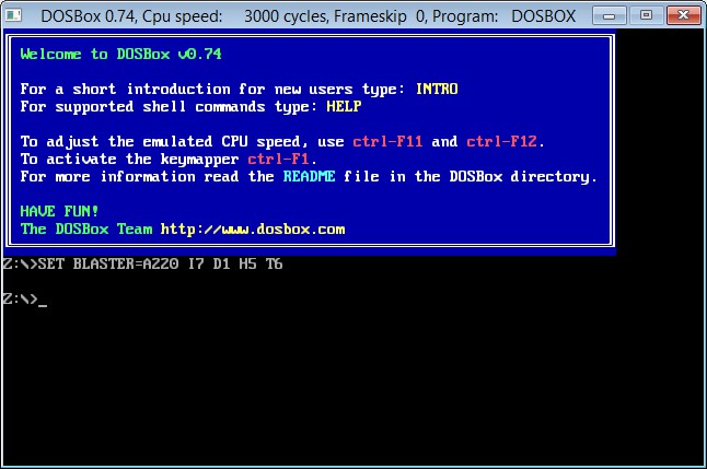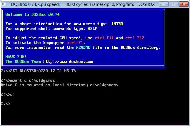 I’m not providing a full installation guide here, it’s too straightforward for that. Install and run DOSBox is all you have to do, along with setting up a proper directory structure in your C: root of course. I chose c:\oldgames\