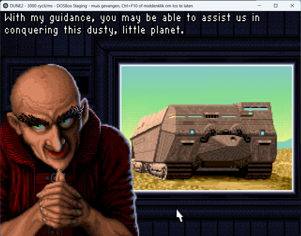 This showed you how to start and play Dune 2, in either DOSBox or DOSBox Staging. Fun game, hè?